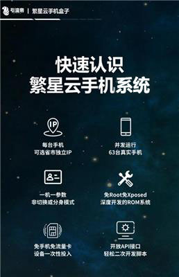 繁星云手机盒子,新型群控营销系统,支持市面上主流的APK安装,目前能够操控的业务有微信、QQ、抖音、陌陌、探探、小红书等,另外支持脚本开发,是自动营销的必备神器。 联系我时,请说是在季晨网看到的,谢谢!